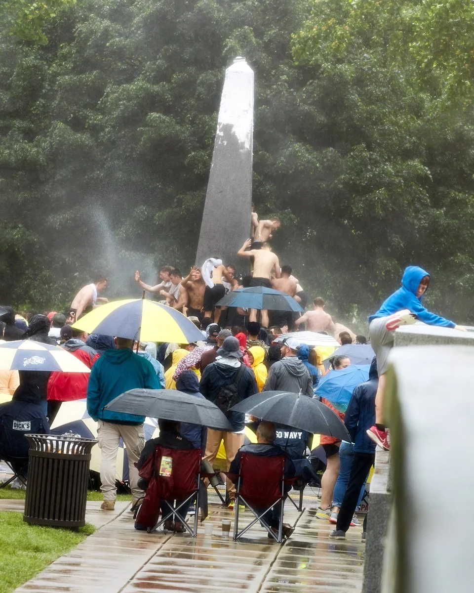 Every spring, on the coastal grounds of the U.S. Naval Academy, a twenty-one-foot obelisk honoring fallen Navy commander William Lewis Herndon is coated in shortening and enveloped by a writhing pyramid of the school’s freshmen, otherwise known as plebes. Shoeless and often shirtless, they crush their bodies against the cool granite and each other, rushing to scale the slippery monument and place a sailor’s cap on its tip.
